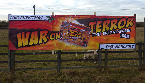 In other news ... we were meant to be in the Observer Gift Guide the other weekend but we got ditched unceremoniously. So we were left with having to do our own advertising this year instead. We made up a 6 metre x 1.5 metre banner and affixed it to the side of the road near a major roundabout on the way into Cambirdge. Look, it's beautiful: