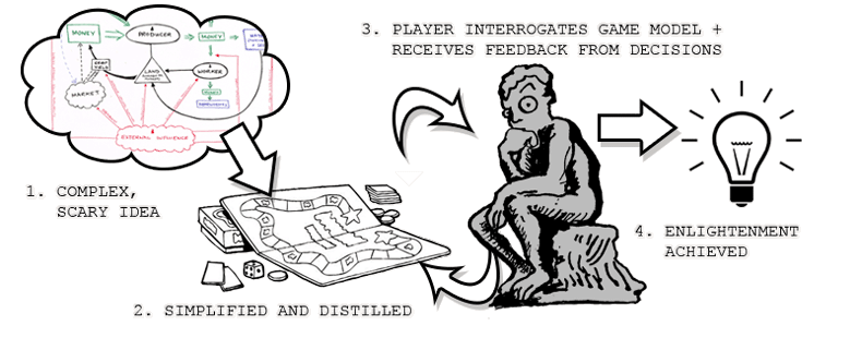 Games communicate & educate by simplifying and distilling then responding to player input.