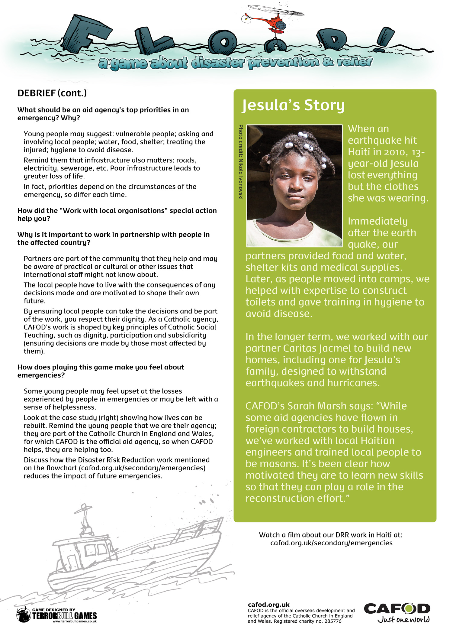 - "A game for CAFOD about disaster preparation and relief"