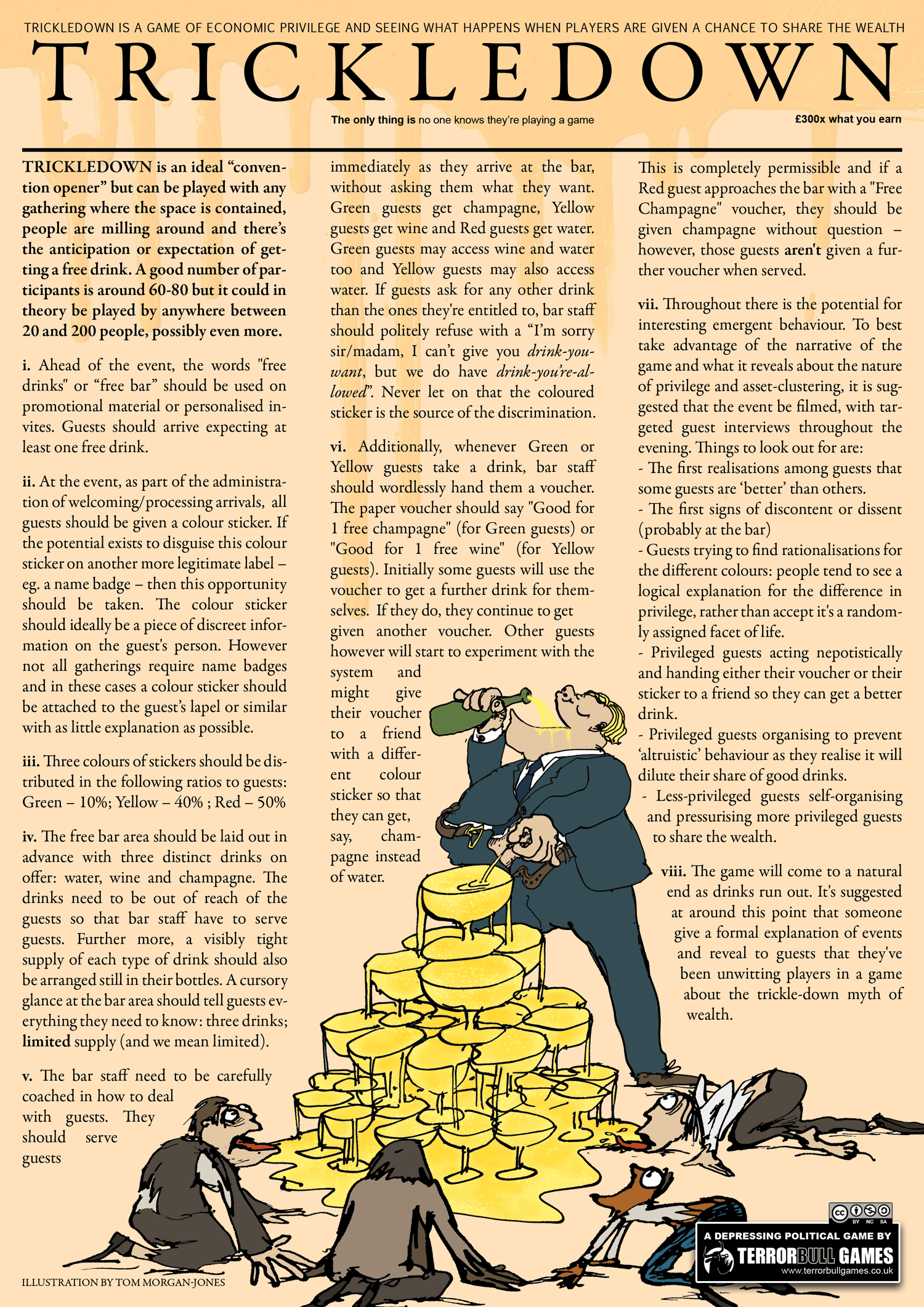 "Trickledown tests whether wealth really does flow down using the metaphor of a free bar that only certain people can access."